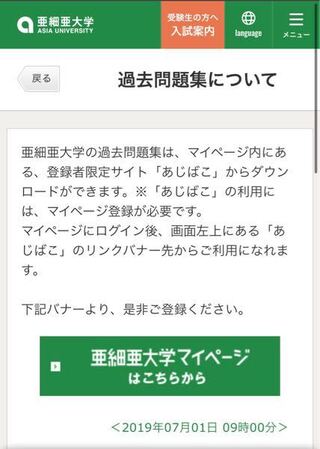 亜細亜大学の過去問をダウンロードしたくて あじばこのページに Yahoo 知恵袋